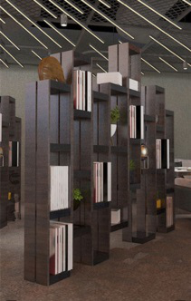 (五)镂空图书架,8套,外尺寸2500*400*2000mm,3.6cm/2.5cm/1.8cm板材,以说明图为准。板材采用无醛实木板材,甲醛释放量0.04mg/L以内。