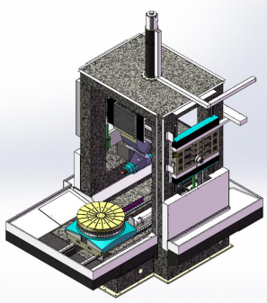 防护外形尺寸长5280mm×宽3850mm×高4250mm、钣金厚度满足MTC1000五轴加工中心结构防护、操作、维修、安装等使用要求。机床光机外形如下图所示: